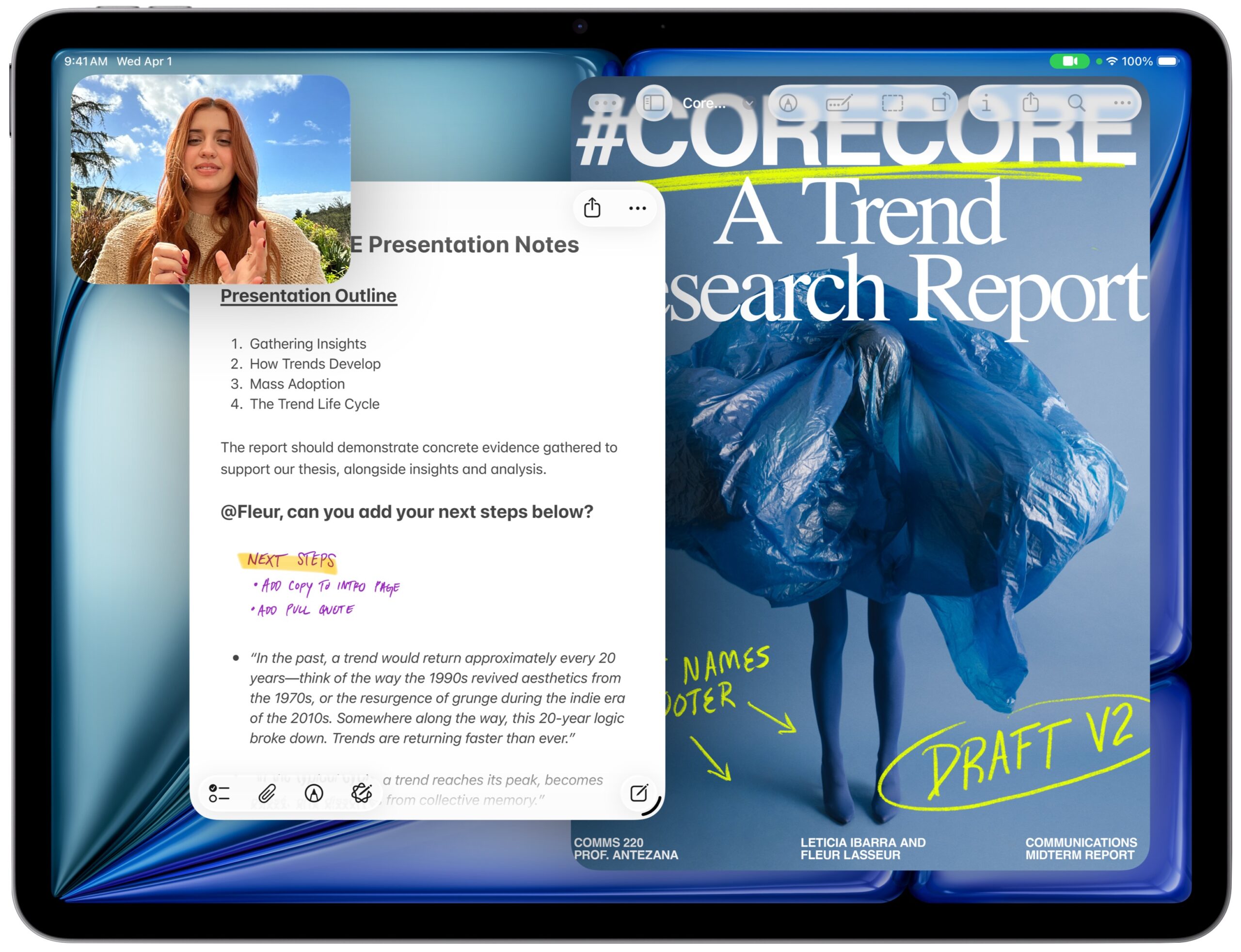 Connectivity receives an upgrade with Apple’s N1 and C1X chips. The N1 wireless networking chip enables Wi-Fi 7 and Bluetooth 6, while the C1X cellular modem in the Wi-Fi + Cellular models delivers up to 50% faster data performance with 30% lower energy consumption than the M3 model’s modem.