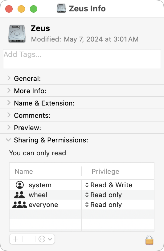 - Multi-user access: Imagine that you share a Mac with family members or colleagues. You want to keep your email and text message conversations private but need to share numerous other large files stored on an external drive. (For just a few files, use the Shared folder alongside your user folders.) By enabling “Ignore ownership,” you can be certain that all users of the Mac can do whatever they need to with those files.