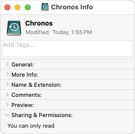 One last thought. If you run into permissions-related problems reading files from an external drive, it’s worth enabling “Ignore ownership” to see if that resolves your issues. If it doesn’t, or if the problems keep cropping up in different contexts, contact us.